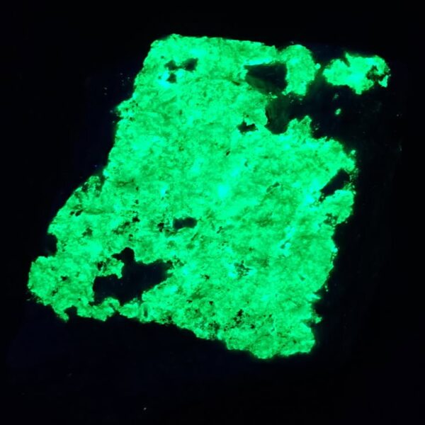 It is fluorescent under longwave ultraviolet light, but it’s even brighter under shortwave ultraviolet light. These photos were taken under shortwave ultraviolet light. Each specimen is different. You will receive the actual specimen in the photos. See other available pieces here: Hyalite Opal