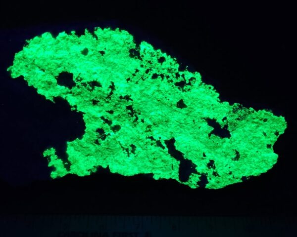 It is fluorescent under longwave ultraviolet light, but it’s even brighter under shortwave ultraviolet light. These photos were taken under shortwave ultraviolet light. Each specimen is different. You will receive the actual specimen in the photos. See other available pieces here: Hyalite Opal