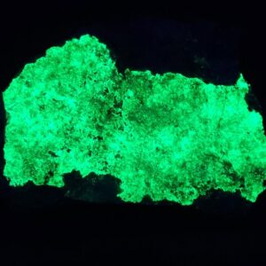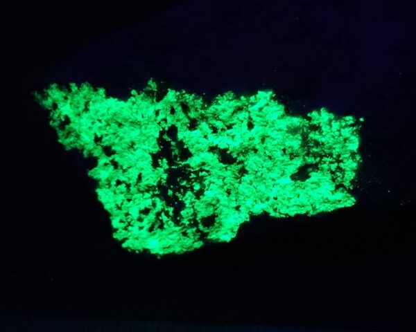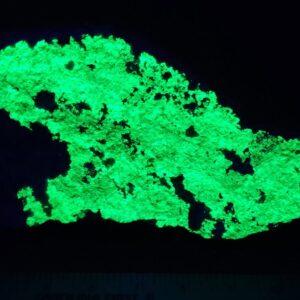It is fluorescent under longwave ultraviolet light, but it’s even brighter under shortwave ultraviolet light. These photos were taken under shortwave ultraviolet light. Each specimen is different. You will receive the actual specimen in the photos. See other available pieces here: Hyalite Opal